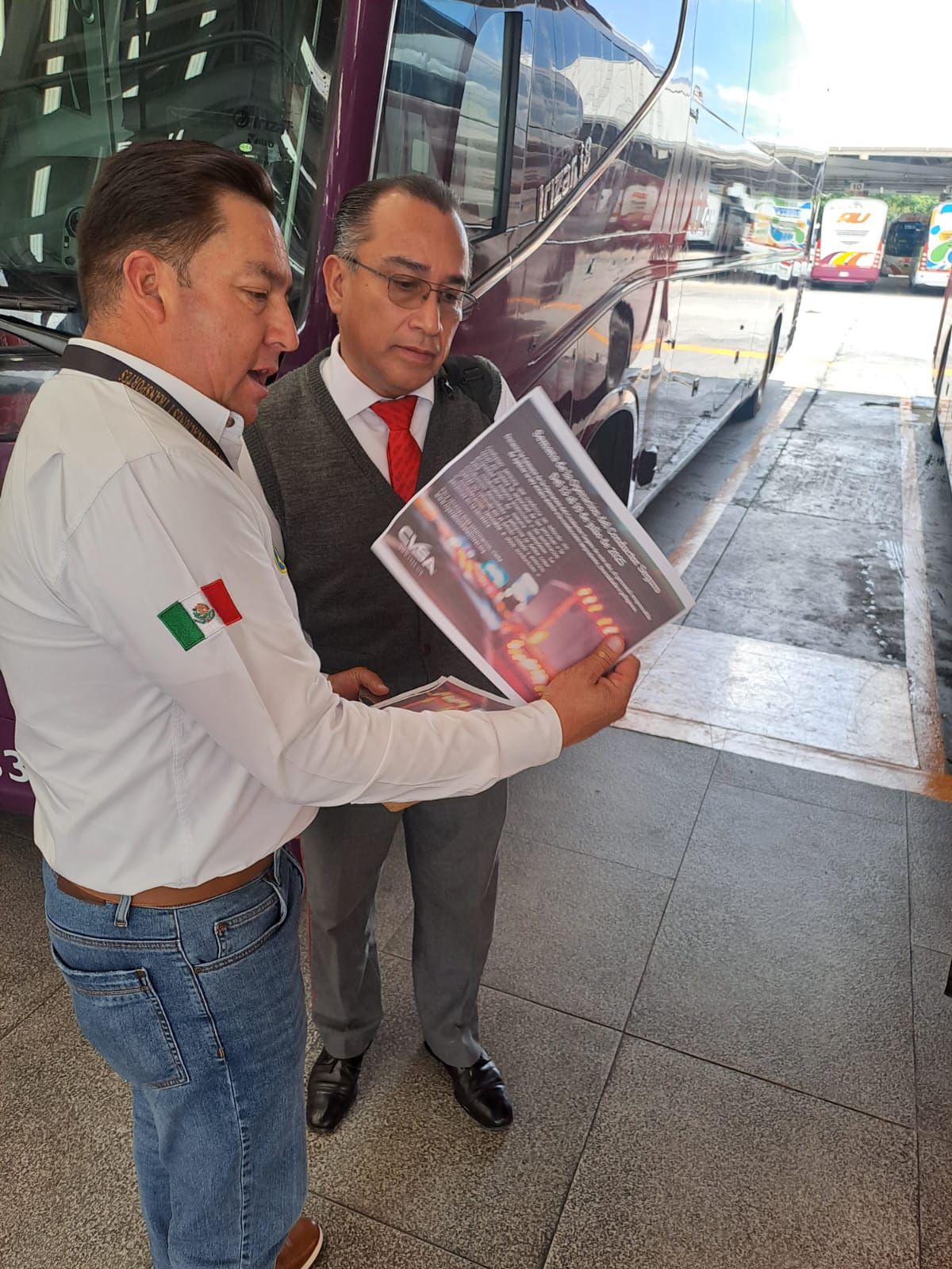Personal de los Centros Fijos de Verificación de Peso y Dimensiones, así como en terminales de pasajeros y con apoyo de cámaras, asociaciones y representantes del sector transporte, entregan material informativo (flyers y trípticos) a operadores de Autotransporte Federal de carga, pasaje y turismo, con el fin de crear conciencia sobre los riesgos de la conducción temeraria.