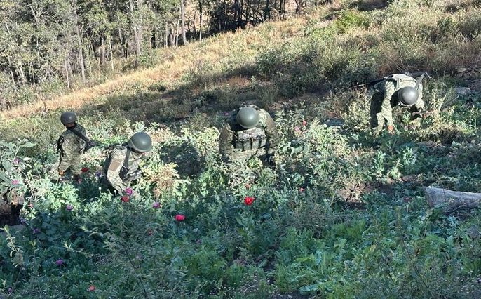 En Chihuahua, Sinaloa, Durango, Guerrero y Oaxaca, elementos del Ejército y Fuerza Aérea Mexicanos, localizaron y destruyeron 146 plantíos de amapola en 14 hectáreas y 44 plantíos de marihuana en cuatro hectáreas
