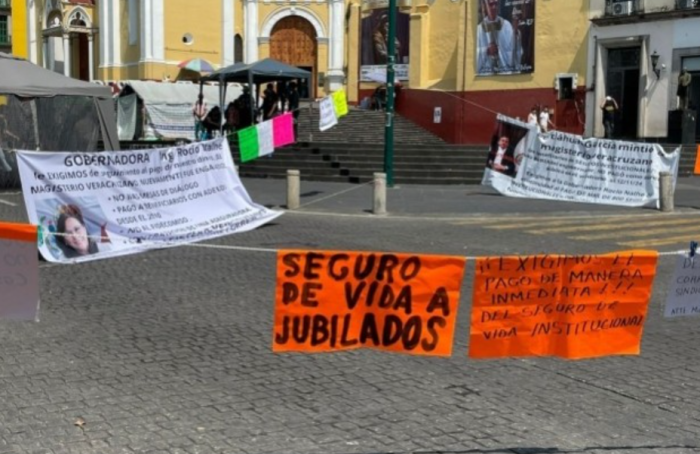 Los manifestantes advirtieron que mantendrán un plantón en la calle Enríquez y la plaza Sebastián Lerdo hasta que el gobierno de Veracruz contrate una empresa Aseguradora encargada de pagar los Seguros Institucionales.