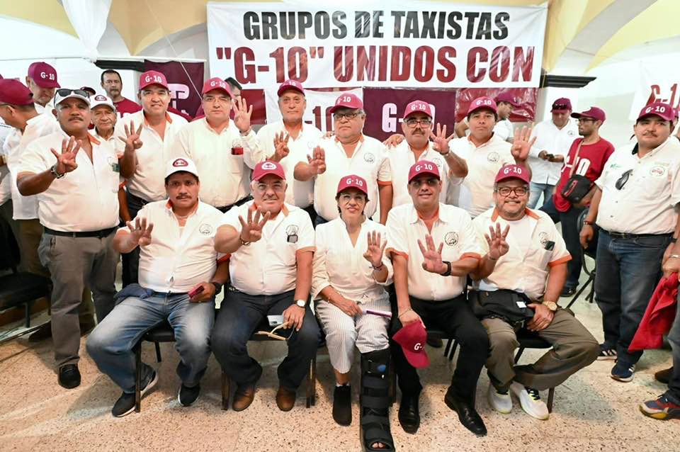 Veracruz, Ver. .- En un encuentro con miembros del Grupo G-10 de taxistas, la candidata de la coalición MORENA-PVEM a la presidencia municipal de Veracruz, Rosa María Hernández Espejo recibió el respaldo del gremio para defender la transformación en las urnas el próximo 1 de junio. Choferes y concesionarios confirmaron su decisión de votar masivamente por un proyecto que sí atienda sus necesidades.