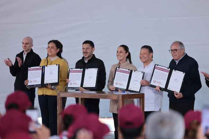 La Jefa del Ejecutivo Federal fue testigo de honor en la firma del convenio de colaboración entre la Secretaría de Bienestar y el ISSSTE para la implementación del programa Salud Casa por Casa, mediante el cual dicho Instituto podrá recibir en sus unidades médicas a los derechohabientes que sean referidos por los facilitadores de la salud.